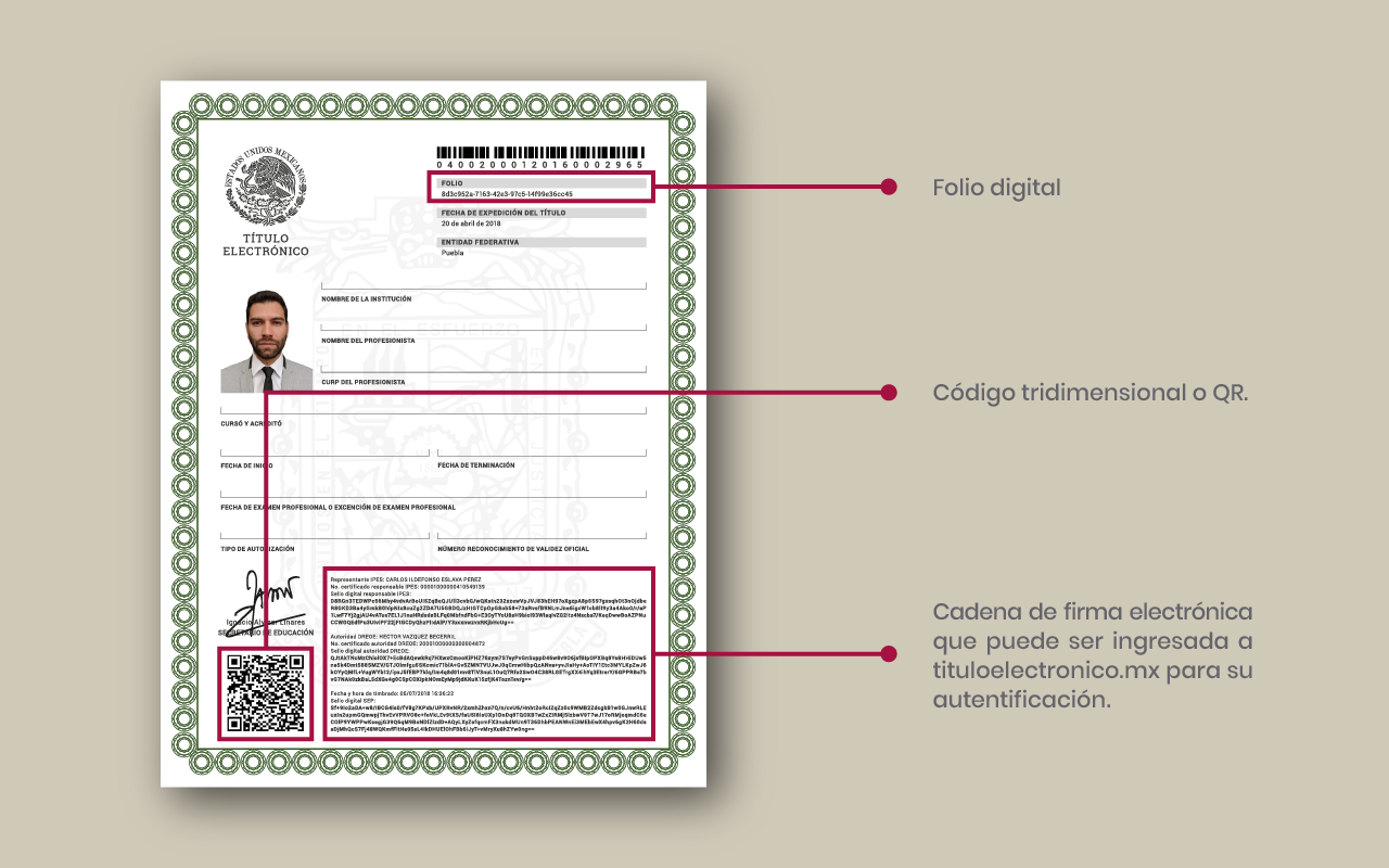 Los profesionistas a quienes se les entregue el título electrónico, podrán contar también con un título representativo en formato PDF (aplica sólo para algunas Instituciones) junto con el título electrónico en formato .XML, indicado por la Secretaría de Educación Pública, que les permita tramitar su cédula profesional, favoreciendo la movilidad en todo el mundo, al hacer mucho más fácil el compartir sus credenciales con futuros empleadores, instituciones, universidades y empresas, que podrán verificar su autenticidad sin la necesidad de consultar directamente con la institución.